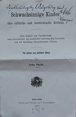 Der Pädagoge gehörte dem seit 1909 gegründeten „Beratenden Ausschuß der Deutschen Vereinigung für Krüppelfürsorge“ sowie dem 1903 ins Leben gerufenen „Erziehungs- und Fürsorgeverein für geistig zurückgebliebene (schwachsinnige) Kinder“ an. An der Gründung beider Vereine war Arno Fuchs maßgebend beteiligt.