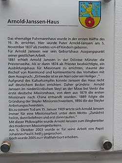 - ↑ Steyler Missionare: Lebensdaten des heiligen Arnold Janssen