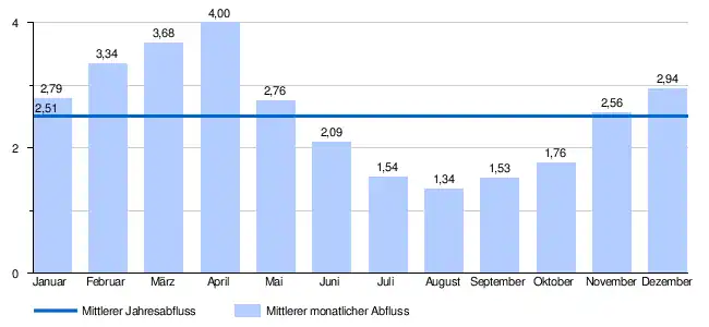 - ↑ Martin Pfaundler, Rolf Weingartner, Robert Diezig: „Versteckt hinter den Mittelwerten“ – die Variabilität des Abflussregimes. In: Hydrologie und Wasserbewirtschaftung (HyWa). Jg. 50, Heft 3, 2006, S. 116–123, hier Tabelle auf S. 119 (Download [PDF; 3,2 MB; abgerufen am 3. November 2024]). Abrufbar unter Gesamtes HyWa Heft 3, 2006..