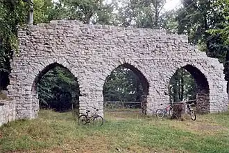 ![]() Spitzbögen des Ostflügels aus dem 14. Jahrhundert (2005) | ||