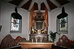 Das Alter der Arper Kirche ist nicht genau bekannt. Die Kirche wurde im Renaissancestil erbaut und dem Patron St. Antonius, dem Einsiedler geweiht. Der älteste Teil stammt wahrscheinlich aus dem 17. Jahrhundert. Regelmäßiger Gottesdienst an Sonn- und Feiertagen findet seit 1917 statt. Die Filialkirche St. Antonius und der eigene Friedhoff werden vom Kirchenvorstand der Filialkirche Arpe verwaltet.[5] Die Filialgemeinde Arpe gehört heute seelsorgerisch zu Pfarrei St. Cyriakus Berghausen.
