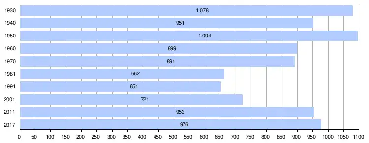 Die Gemeinde, die eine Fläche von 57,41 Quadratkilometern[5] hat, hat 1.047 Einwohner (Stand: 2024) und eine Bevölkerungsdichte von 18 Einwohnern pro Quadratkilometer.
