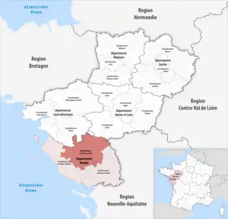 ![]() Lage des Arrondissements La Roche-sur-Yon im Département Vendée | |