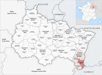 ![]() Lage des Arrondissements Mulhouse im Département Haut-Rhin | |