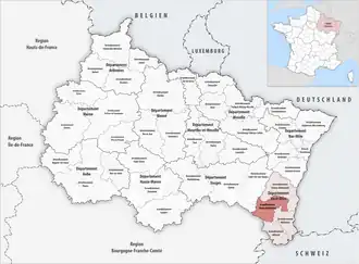 ![]() Lage des Arrondissements Thann-Guebwiller im Département Haut-Rhin | |