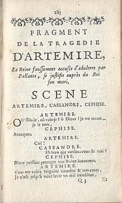 - ↑ Vgl. Avertissement des Editeurs zu den Fragmens d'Artémire, in: Oeuvres completes de Voltaire, Société Littéraire-typographique, Kehl, 1785, Band 1, S. 161.