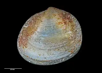 - ↑ a b Paul Chanley, Matoira Chanley: "Reproductive biology of Arthritica crassiformis and A. bifurca, two commensal bivalve molluscs (Leptonacea)". New Zealand Journal of Marine and Freshwater Research, 14 (1): 31–43, 1980. doi:10.1080/00288330.1980.9515840.