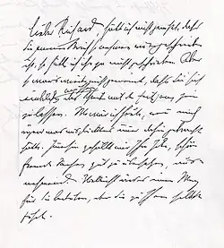 Als Faustregel kann dabei das Schreibmedium herangezogen werden: Während die privaten Schreiben zumeist mit Tinte und gelegentlich mit Bleistift abgefasst sind, sind die geschäftlichen seit der Zeit nach 1900 vorwiegend von der jeweiligen Sekretärin nach Diktat mit Schreibmaschine getippt.[5] Für diese sind in seinem Nachlass Durchschläge erhalten, so dass auch viele Briefe nachweisbar sind, die nicht über den Empfänger oder die Empfängerin überliefert wurden. Den Durchschlägen fehlen neben der handschriftlichen Unterschrift auch handschriftliche Korrekturen und Ergänzungen. Außerdem ist nicht mit Sicherheit festzustellen, ob das Korrespondenzstück tatsächlich abgeschickt und empfangen wurde.