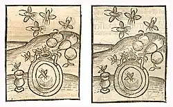 - ↑ Hieronymus Brunschwig. Kleines Destillierbuch. Güninger, Straßburg 1500, Blatt 46r (Digitalisat)