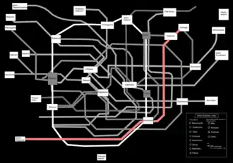 ; die insgesamt 20 Bahnhöfe tragen den Buchstaben A gefolgt von einer Zahl.
