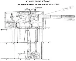 Die 152-mm-L/40-Armstrong-Schnellfeuergeschütze der Mittelartillerie hatten eine Reichweite von 9.000 m und eine Feuergeschwindigkeit von fünf bis sieben Schuss je nach Trainingsgrad der Bedienung.