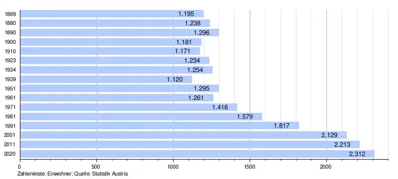 1991 hatte die Gemeinde laut Volkszählung 1.817 Einwohner, 2001 dann 2.129 Einwohner. Da sowohl Geburtenbilanz als auch Wanderungsbilanz positiv blieben, nahm die Bevölkerungszahl weiter zu, auf 2.213 im Jahr 2011 und auf 2.312 im Jahr 2020.[6]