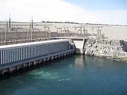 Am 9. Januar 1960 begann der Bau des Assuan-Staudamms mit einer Sprengung.[11] Vier Jahre später wurde nach Abschluss des ersten Bauabschnitts erstmals Nilwasser zur Füllung des Stausees eingeleitet. Bei einer Zeremonie am 14. Mai 1964 betätigten Präsident Nasser und der sowjetische Partei- und Regierungschef Nikita Chruschtschow sowie die Staatspräsidenten Abd as-Salam Arif (Irak) und Abdullah as-Sallal (Jemenitische Arabische Republik) gemeinsam einen Schalter zur Sprengung eines Sandwalls, womit der Nil in das vorgesehene Becken umgeleitet wurde.[12]