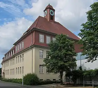 Die in den Jahren 1907 und 1914 in traditioneller Bauweise errichteten Schulgebäude sind durch einen Mitteltrakt miteinander verbunden. Die relativ schlichte Fassade des Gebäudes wird im nördlichen Teil – dem Haupteingang – durch die Sandsteinfassung des Eingangs und durch die Putzstrukturierung der Fassade und zusätzlich durch die Fenstergestaltung des Treppenhauses betont. Das gesamte Schulgebäude trägt ein wuchtiges Mansarddach mit Biberschwanzziegeldeckung und einem kleinen Uhrtürmchen.