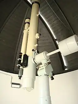 Der Beobachtungsturm der Station trägt eine Kuppel von 4,20 m Durchmesser, in der ein großer Coudé-Refraktor 150/2300 auf einer deutschen Wachter-Montierung zum Einsatz kommt. Das Teleskop eignet sich sehr gut für astronomische Beobachtungen im Planetensystem, liefert aber auch gute Ergebnisse für Deep-Sky-Objekte (Galaxien, Nebel etc.).