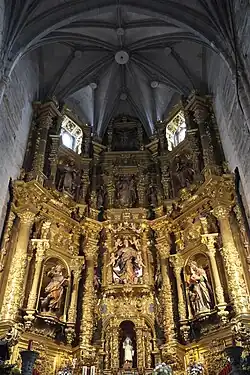 - Der barocke Hochaltar wurde in den Jahren 1717 bis 1733 von mehreren Künstlern geschaffen. Er wurde von José Valdán begonnen und von Joaquin de Villandiego weitergeführt. Vollendet wurde der Altar vermutlich von Bernardo López de Frías el Mozo. Im Mittelteil sind von unten nach oben das Jesuskind, Mariä Himmelfahrt, der heilige Josef mit dem Jesuskind auf dem Arm und im Altarauszug die Kreuzigung Christi dargestellt. In den seitlichen Nischen stehen die Evangelisten Johannes (links unten), Lukas (links oben), Matthäus (rechts unten) und Markus (rechts oben).
