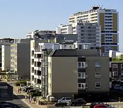 In den Jahrzehnten nach dem Zweiten Weltkrieg wandelte sich Sylt zu einem Zentrum des Tourismus. In wenigen Jahren entstanden zahlreiche Neubauten und die ersten großen Hotels.[1] Erst 1960 war die erste Verkehrsampel in Westerland nötig, bereits im Jahr 1970 übernachteten 188.000 Kurgäste auf Sylt.[2] Besonders auffallend war dabei das durch das Stuttgarter Unternehmen Hausbau Bense gebaute neue Kurzentrum, das Mitte der 1960er Jahre direkt am Strand in Westerland entstand. Es bestand aus drei Hochhäusern, die bis heute das Westerländer Stadtbild prägen. Das größte, direkt gegenüber der Musikmuschel am Strand, hatte 13 Stockwerke und überragte alle anderen Gebäude. In ihm befanden sich Ferienwohnungen, mehrere Hotels und öffentliche Einrichtungen. Nach dem Erfolg mit dem Kurzentrum wollte der Bauunternehmer Bense einen noch größeren Hotelbau erschaffen.