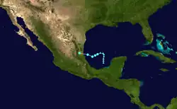 Am 17. Juni 2024 begann das National Hurricane Center Warnungen bezüglich des potentiellen Tropischen Sturms Eins herauszugeben. Das relativ große System befand sich zu diesem Zeitpunkt in der Bucht von Campeche in der Karibik und bewegte sich in nordnordwestliche Richtung. Für Teile Mexikos und Texas wurden Tropensturmwarnungen herausgegeben.[18] Zuvor hatte das System bereits starke Regenfälle über Teile Mittelamerikas gebracht. Durch diese starben in El Salvador elf Menschen, drei weitere kamen in Guatemala ums Leben. Am 19. Juni wurde das System zum tropischen Sturm Alberto heraufgestuft. Zu dem Zeitpunkt war der Sturm sehr einseitig gestaltet. Während das Windfeld im Norden noch 650 km vom Zentrum Tropensturmstärke erreichte, waren die Windgeschwindigkeiten südlich des Zentrums relativ gering. Das National Hurricane Center warnte vor Regenmengen zwischen 100 und 200 Litern, lokal sogar 400 Liter pro Quadratmeter.[19] Nach einer langen Trockenheit in Teilen Mexikos sehen die dortigen Behörden die von Alberto verursachten Niederschläge als willkommene Möglichkeit, die anhaltende Wasserknappheit endlich zu lindern.[20]