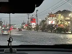 In Südosttexas kam es zu Stromausfällen, von denen mehr als 2,7 Mio. Haushalte betroffen waren. Offizielle rechnen damit, dass die Stromausfälle über Tage anhalten werden, bis sie repariert werden können. Besonders problematisch ist, dass damit auch kein Betrieb von Klimaanlagen möglich ist, während in Texas durch Hitze und hohe Feuchtigkeit gesundheitlich bedenkliche Werte beim Hitzeindex erreicht werden.[70] Mehr als vier Tage nach dem Hurrikan waren in Houston noch über 800.000 Stromkunden ohne Elektrizität. Von den Stromausfällen waren teilweise auch Krankenhäuser betroffen, sodass sie auf Notstromaggregate umschalten mussten. Durch die große Hitze kam es vermehrt zu hitzebedingten Einlieferungen von Patienten und teils überlasteten Krankenhäusern.[71] Auch am 19. Juli waren die Stromausfälle noch nicht vollständig behoben.[72]