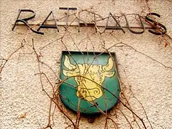 Es handelt sich um ein sogenanntes „redendes Wappen“, das auf den Ortsnamen hindeutet. Es zeigt einen goldenen Auerochsenkopf auf grünem Grund.
