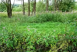 Die Flurbezeichnung „Auf dem Ried“ lässt vermuten, dass der Auenbereich auch schon früher sehr nass gewesen war. Namensgeschichtlich wird der Begriff von der Grundbedeutung „einer sumpfigen, feuchten Gegend, auf der das Riedgras wächst“ abgeleitet. Quellaustritte, der Bach und die Mühlgräben verursachten den hohen Grundwasserstand. In dieser Zeit dienten die Gräser nur als Einstreu für die Ställe, bis mit dem Anlegen von Gräben und Drainagen in den 1930er Jahren der Bereich entwässert wurde und die Wiesen intensiver genutzt werden konnten.[3]