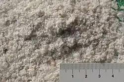 Auftausalz kann auch natürliche Nebenminerale wie Anhydrit (Calciumsulfat), Magnesiumsulfat oder Ton enthalten. Rieselhilfen verhindern das Verklumpen.[5] Andere verwendete Auftaumittel sind Calciumchlorid (CaCl2), Magnesiumchlorid (MgCl2) und Kaliumchlorid (KCl). Zuweilen findet auch das Mineral Kainit dafür Verwendung.