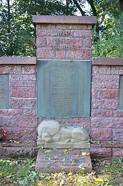 - Schlafender Löwe am Ehrenmal für Gefallene des 1. Weltkriegs von Holzhausen am Alten Rathaus, 1922 (heute: Burgholzhausen vor der Höhe). 1960 kam der Löwe zum neuen Ehrenmal für Gefallene beider Weltkriege auf den (alten) Friedhof.
