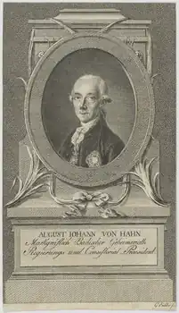 - Hahn August Johann; Frhr von – Biografische Kurzinformation. In: LEO-BW, Landesarchiv Baden-Württemberg.