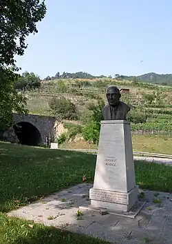 - Denkmal in Dürnstein mit der Inschrift: „Initiator des Baues der Strasse durch die Wachau - und des Dürnsteiner Tunnels 1954 – 1959“.