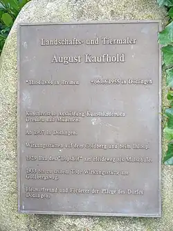 Im November 1907, schrieb der Kunstkritiker Wilhelm von Busch (1868–1940) anlässlich einer Kunstausstellung des Oldenburger Kunstvereins im Augusteum in den „Nachrichten für Stadt und Land“, Oldenburg: „Zwei merkwürdige Heidebilder stellt August Kaufhold, Wildeshausen, aus. Ein neuer, unbekannter Name, vielleicht eines Sommergastes der alten Huntestadt, der dorthin verschlagen ist. Im benachbarten Dötlingen hausen ja auch beständig Malkünstler oder -jünger.“