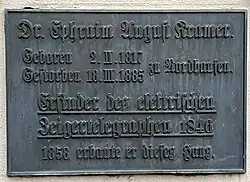 - Hans Walter Wichert: Dr. August Kramer – Leben und Werk des Schullehrers, Erfinders und Telegrafenkonstrukteurs aus Nordhausen. Nordhausen, Wiss. Verein zu Nordhausen, 1997 (online).