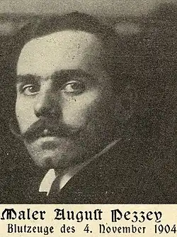 - ↑ Die Vorgänge in Innsbruck. (…) Der Tod des Malers Pezzey. In: Mährisch-Schlesische Presse. Unabhängige politische Zeitung für die gesamten Interessen von Stadt und Land, Nr. 91/1904 (XXI. Jahrgang), 12. November 1904, S. 1, Mitte rechts. (online bei ANNO).