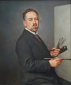 - Selbstporträt August Wilde, 1930, Öl auf Leinwand, 86,5 × 73,5 cm, signiert und datiert: „Aug Wilde 1930“, Stadtmuseum Bad Dürkheim