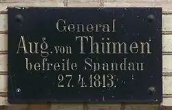 - Johannes Wütschke: Festungsstadt Spandau vor 190 Jahren befreit. In: Spandauer Volksblatt. vom 23. April 2003.