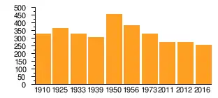 | Jahr | 1910 | 1925 | 1933 | 1939 | 1950 | 1956 | 1973 | 2011 | 2012 | 2016 |