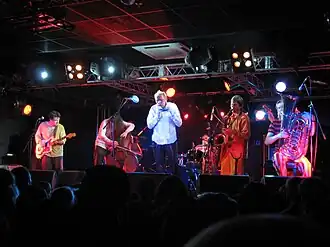 In einer Konzertkritik wird der Auftritt der Band folgendermaßen beschrieben: „Anarchisch und explosiv. Ein wütendes Spiel mit Stereotypen: auf der Bühne legt ein KGB-General einen furiosen Tanz hin, auf seiner Brust glitzern und scheppern Medaillen. Neben ihm wirbelt ein kahlgeschorener Trommler umher, der an einen buddhistischen Mönch erinnert. Es ist die pure Rebellion, es ist der russische Untergrund.“[1]