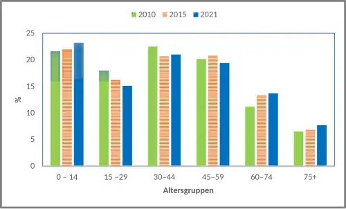 Die Altersstruktur der Gemeinde weist eine relativ junge Bevölkerung auf.