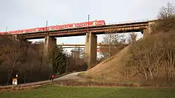 - ↑ a b Arno Stoffels: 530 Meter langes Bahn-Bauwerk bei Emskirchen wird erst mit deutlicher Verspätung fertig. In: Nürnberger Nachrichten. 27. Dezember 2014, S. 17 (online).