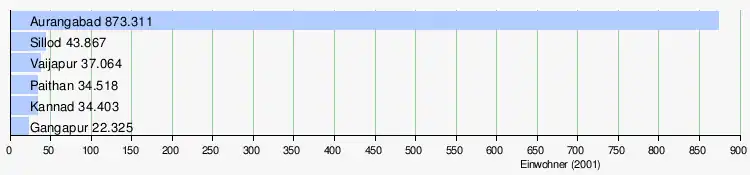 Einwohnerstärkste Ortschaft des Distrikts ist Aurangabad mit fast 900.000 Bewohnern. Weitere bedeutende Städte mit einer Einwohnerschaft von mehr als 20.000 Menschen sind Sillod, Vaijapur, Paithan, Kannad und Gangapur.