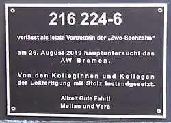 - ↑ a b c Corinna Tonner: Hobby-Historiker kennen die Details: 100 Jahre Lok-Reparaturen. Bericht im Weser-Kurier am 2. April 2014.
