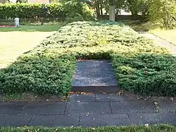 Anfang der 1980er Jahre entwickelte sich eine Debatte um die „vergessenen Opfer“ des Nationalsozialismus in der Bundesrepublik Deutschland, dabei geriet auch die Volkswagen AG in Wolfsburg ins Blickfeld der überregionalen Öffentlichkeit. Die Volkswagen AG hatte bereits zuvor eine Forschungsarbeit bei Klaus-Jörg Siegfried in Auftrag gegeben, die unter dem Titel „Rüstungsproduktion und Zwangsarbeit im Volkswagenwerk“ veröffentlicht wurde. Eine weitere Arbeit von ihm mit dem Titel „Das Leben der Zwangsarbeiter im Volkswagenwerk von 1939–1945“ erschien danach. Durch diese Arbeiten und Vorträge von Siegfried wurden dabei insbesondere nicht nur unmenschliche Handlungen im Volkswagenwerk, sondern auch die Verstrickungen bis hinein in die Stadt deutlich. Daraufhin forderte der damalige Gesamtbetriebsrat-Vorsitzende, Walter Hiller, eine kritische Aufarbeitung der Geschichte des Volkswagenwerks und der Konzernvorstand beauftragte den bekannten Neuhistoriker Professor Hans Mommsen damit. Nach der Veröffentlichung der Ergebnisse, bekannte sich der Volkswagen-Vorstand offen zu seiner nationalsozialistischen Vergangenheit. Kritik zog sich Mommsen zu, weil er sich nicht auf eine pauschale Verurteilung des Kriegsverbrechers Porsche festlegen ließ und eine Entschädigung von Zwangsarbeiterinnen und Zwangsarbeiter aus „praktischen Gründen“ ablehnte. In den USA wurde eine Sammelklage eingereicht, die lange nicht entschieden wurde, bis die Bundesrepublik am 2. August 2000 ein Stiftungsgesetz erließ, nach dem Zwangsarbeiterinnen einen Anspruch für ein verlorenes Kind bei der im Jahr 2000 gegründeten Stiftung „Erinnerung, Verantwortung und Zukunft“ einreichen können.[24] In dieser „Entschädigungsdebatte“ geriet das „Ausländerkinder-Pflegeheim des Volkswagenwerks“ einige Male in die regionale und überregionale Öffentlichkeit. Die ARD sendete im Mai 1999 einen Bericht über das „Todeslager für Babys“. Das Stadtarchiv verlegte mehrere Erlebnisberichte von Opfern auf Initiative von Siegfried.[25] 1970 wurde die etwa dreimal zehn Meter große Grabstelle auf dem Rühener Friedhof von der Gemeinde eingefasst und mit bodendeckenden Nadelhölzern bepflanzt. Am Rand der Grabstelle steht eine Säule mit quadratischem Grundriss, auf der das Vaterunser eingraviert ist. Eine 1988 hinzugefügte Gedenkplatte klärt über das Schicksal der Kinder auf.