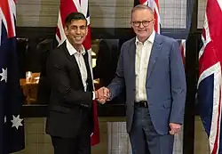 Nach dem Ausscheiden des Vereinigten Königreichs aus der EU (Brexit) intensivierten London und Canberra ihre Handelsgespräche und einigten sich 2021 auf ein umfassendes Freihandelsabkommen. Das Australia–United Kingdom Free Trade Agreement (A-UKFTA) trat am 31. Mai 2023 in Kraft und beseitigt Zölle auf 99 % aller australischen Warenexporte nach Großbritannien. 2023 trat das UK außerdem dem regionalen Freihandelsabkommen CPTPP bei, dem auch Australien angehört.[12]