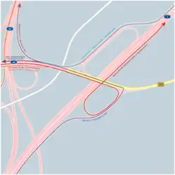 Hinzu kommt der Verkehr von und zur B 326/L 511, der die nicht höhenfreien Autobahnverbindungen ebenfalls kreuzt. Dies führt zu einer komplexen Verkehrsführung, die anhand der nebenstehenden Skizze deutlich wird.