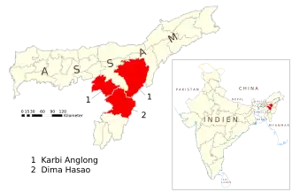 - ↑ Ramesh Menon, Guwahati: Tribal unrest: Karbi tribals demand autonomous state within Assam. indiatoday, 15. September 1987, abgerufen am 5. März 2015 (englisch).