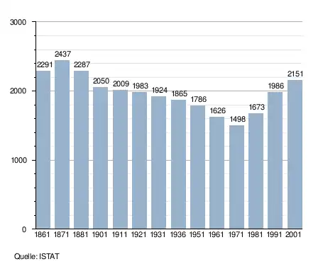- ↑ Bilancio demografico e popolazione residente per sesso al 31 dicembre 2024. ISTAT. (Bevölkerungsstatistiken des Istituto Nazionale di Statistica, Stand 31. Dezember 2024).