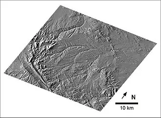 - ↑ Langenhorst F. und Deutsch A.: The Azuara and Rubielos structures, Spain: Twin impact craters or Alpine thrust systems? 1996.