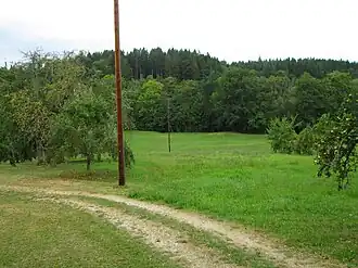 ![]() Streuobstwiese mit Bärenbach im Hintergrund, oberhalb des Weilers Bärenbach | ||