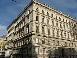 Das Gebäude wurde 1862 von Johann Romano und August Schwendenwein im frühhistoristischen Stil erbaut. Die Rückfront an der Bösendorferstraße wird durch lisenen- und pilastergerahmte Fenster und einen seichten Mittelrisalit mit Balkonen gekennzeichnet.