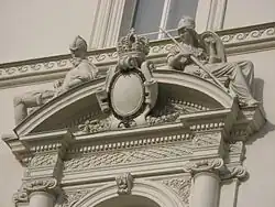 Bedeutend ist auch die Gestaltung im Inneren, wie das bereits erwähnte Foyer und das Stiegenhaus. In der Beletage befindet sich ein weiß stuckierter Festsaal in Neorokoko-Formen. Der Konferenztisch und die Stühle wurden 1940 nach dem Vorbild der Berliner Reichskanzlei geschaffen. Daneben liegen zwei Salons. Alle drei Räume sind reich ausgestattet mit Kaminen, vergoldeten Wandlustern, Spiegelgewölben, weißen Türen mit geschnitzten Ornamenten und elfenbeinbeschlagenen Griffen, Parkettböden und stuckierten Wandfeldern.
