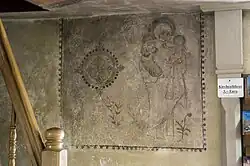 Die Bilder an der Südwand des Chores sind die älteren. Sie sind sehr verblasst, vom Langhaus aus kaum zu sehen und oben durch die hier erhaltene barocke Stuckdecke abgeschnitten. In der Mitte steht Maria als Immaculata, unbefleckt Empfangene. Seitlich sind Brustbilder der vier lateinischen Kirchenlehrer Hieronymus, Ambrosius von Mailand, Augustinus von Hippo und Papst Gregor der Große hinzugefügt. Links unten kniet ein Stifter im Gewand eines Klerikers.